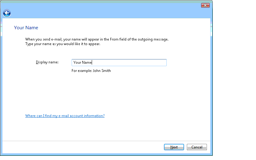 | 2) Enter your name, then click Next. |